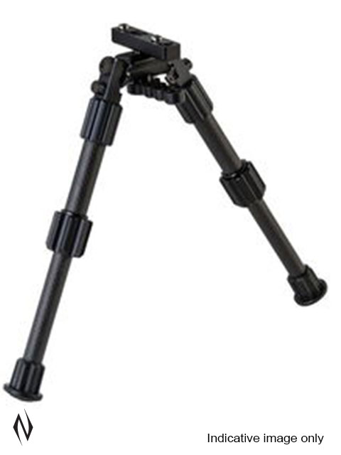 >>Achieve maximum accuracy with the Caldwell Accumax Carbon Fibre Bipod. The Accumax Premium Carbon Fibre Bipod attaches for easy and secure lock-up. It features quick-deployment carbon fibre legs with 90 degree forward locking method or backward method with spring-loaded buttons. The Premium Carbon Fibre Bipod also features an omni-directional ball mount for 360-degree panning, a lever lock handle for fast adjustments, and of course, twist-lock leg length adjustments.