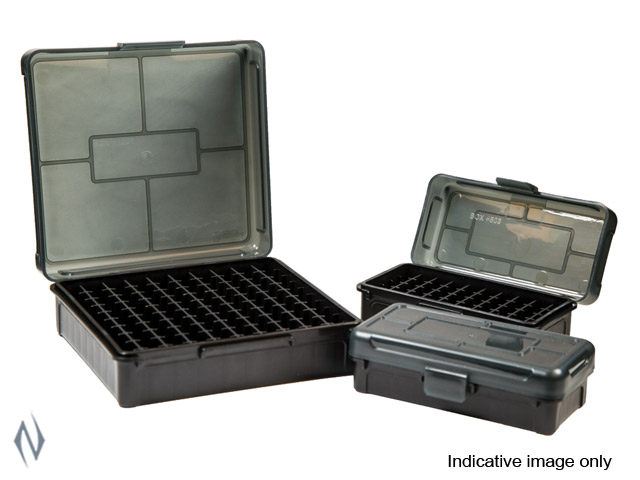<>New hinge-top design prevents lid from inadvertently closing, making it more user friendly and extending the life of the ammo box. <>High-density polymer construction for maximum durability. <>Ammo box lid accommodates common-sized (1" x 2-5/8") printed labels.