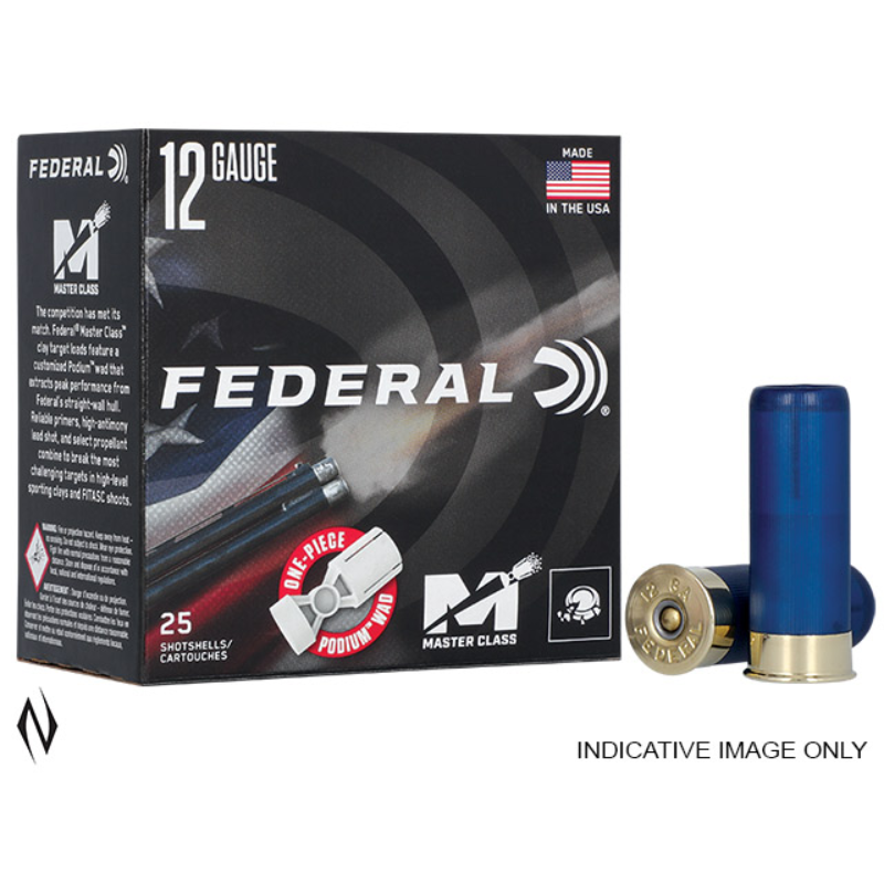 >>Your competition has met its match. Federal® Master Class™ is a new competition-level sporting clay load that features a customised Podium™ wad that extracts peak performance from Federal's straight-wall hull. High-antimony lead shot, a reliable primer, and select propellant combine to break the most challenging targets in high-level sporting clays and FITASC shoots. >>FEATURES & BENEFITS <>One-piece Podium wad <>High-antimony lead shot provides the ideal balance of hardness and density <>Straight-wall hull <>Inserted plastic base wad <>Striated tube