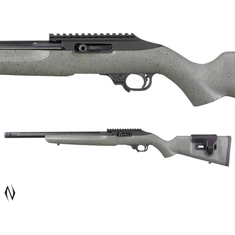SPECIFICATIONS?<>Stock Speckle d Black/Grey Laminate?<>Capaci ty: 10?<>Barrel Material: Allo y Steel?<>Barrel Finish: Satin Black?<>Threaded Barrel: Yes <>Sights: None - Optics-Ready, 30 MOA Picatinny Rail?<>Recei ver Material: Aluminium?<>Rece iver Finish: Hard-Coat Anodize d Black?<>Weight: 6 lb.?<>Twis t: 1:16" RH?<>Overall Length: 36"?<>Barrel Length: 16.12"?<> Length of Pull: 13.50"?<>Groov es: 6??>>FEATURES?<>Fully adju stable cheek rest can be repos itioned to accommodate varying comb heights and positions to create a custom-adjusted feel that is stable, comfortable a nd repeatable for optic alignm ent.?<>Hard-coat anodized, CNC -machined receiver made from h eat treated and stress relieve d aluminum allows for optimal receiver-to-bolt interaction a nd a match-grade feel.?<>Propr ietary, enhanced semi-auto cha mber proven to increase accura cy and precision while not com promising reliable feeding and extraction.?<>BX-Trigger with a light, crisp 2.5 - 3 pound trigger pull weight with minim al overtravel and a positive r eset.?<>Dual bedding system in corporates a second bedding lu g, ensuring the receiver is se curely bedded to the stock.?He at treated and nitrided CNC-ma chined match bolt that creates a tight-fitting, smooth actio n enabling the highest level o f performance.?<>Receiver inco rporates a rear cleaning port, providing access to the barre l from the rear of the receive r for ease of cleaning.?<>Top barrel locator allows for a fr ee-floating barrel for superio r accuracy.?<>Detachable, left -handed 10-round rotary magazi ne features a unique rotor to separate cartridges and provid e reliable feeding. Not compat ible with standard right-hande d 10/22 magazines. See ShopRug er.com for left-handed 10/22 m agazines.?<>Easy-to-use, exten ded magazine release provides smooth, no-fuss removal of flu sh-mounted magazine.?16-1/8" c old hammer-forged bull barrel is fluted to reduce weight and dissipate heat and is also th readed with a 1/2"-28 pattern to accommodate the included mu zzle brake or other barrel acc essories.?<>Positive, push-but ton, left-handed, cross-bolt m anual safety.?<>Integral, opti cs-ready 30 MOA Picatinny rail for increased long-range elev ation capabilities.?<>Match bo lt release allows you to easil y advance the nitrided bolt wi th a quick pull and release to the rear.?<>Heat-stabilized, glass-filled, polymer trigger housing assembly is precision made of high-tech material for improved manufacturing tolera nces, impact and abrasion-resi stance and an unmatched abilit y to withstand the elements.?> >Also includes: hard case; Rug er Custom Shop Certificate of Authenticity, challenge coin, cleaning cloth and decal.