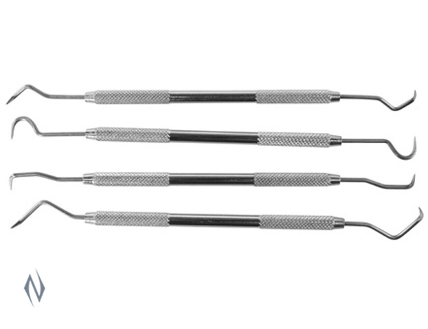 >>Useful for a variety of functions including assembly and disassembly of firearms (especially helpful for hooking and unhooking springs), scraping dirt and residue from hard to reach places, scribing lines in both metal and wood, etc. >>Four separate double-ended tools offer eight distinctly different picks to accommodate every situation. >>Feature: <>Includes four separate double-ended tools, offering eight distinctly different picks <>Useful for scraping dirt and residue from hard to reach places <>Made of durable stainless steel